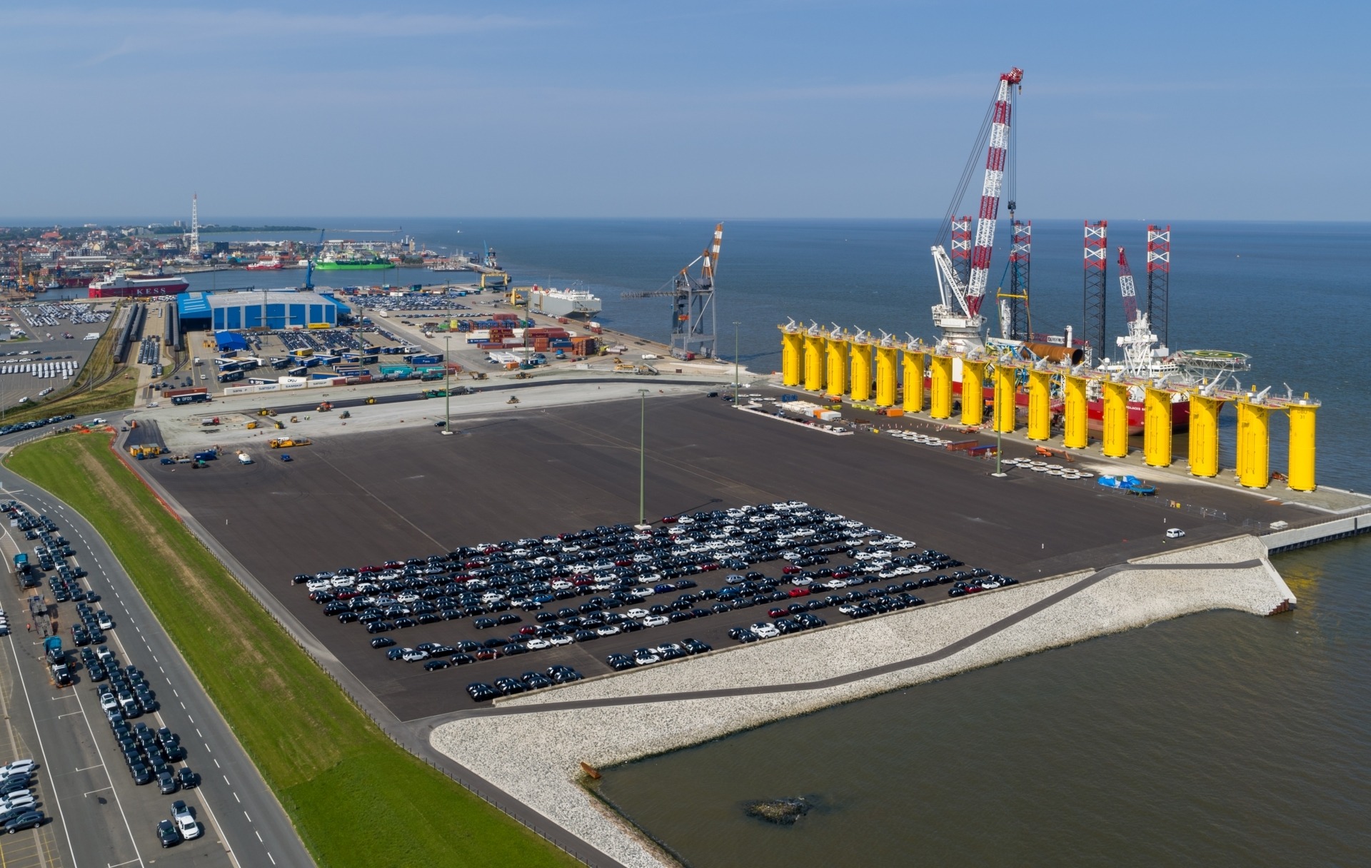 Bei diesem Projekt handelt es sich um den Neubau einer Kaianlage für den Umschlag von RoRo-Gütern und Offshore Windkraftkomponenten in Verlängerung des Europakais in Cuxhaven. Das Besondere an diesem Projekt sind u.a. die Mengen und die Dimensionen des Materials z.B.